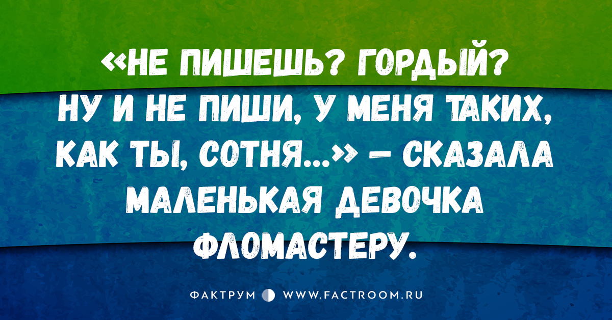 Анекдоты 09.11.2016 10 открыток с приколами Читайте также: Подборка шуток и анекдотов № 37 Еще: 20 анекдотов на Фактруме 12 анекдотов 15 анекдотов о недвижимости и ипотеке в нашей стране Сестра Анна: анекдот про монашку, которая оказалась не так проста! 10 иронических открыток Интересные факты из рубрики «Анекдоты»