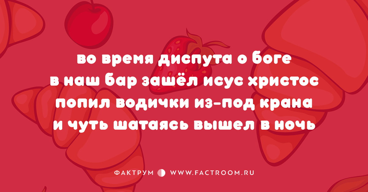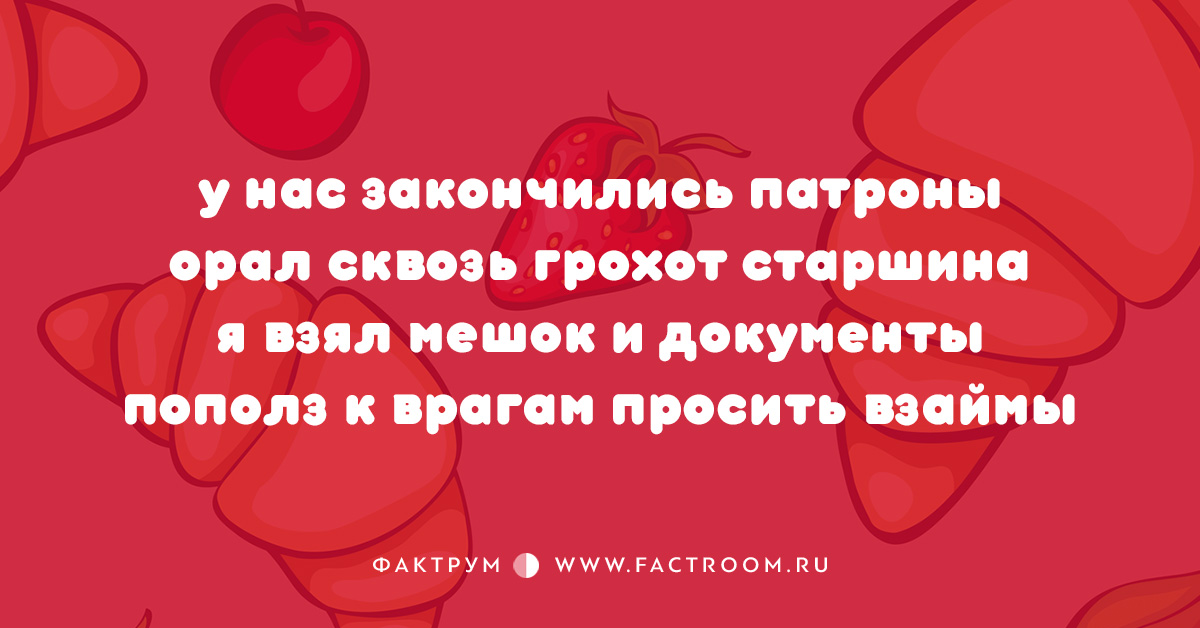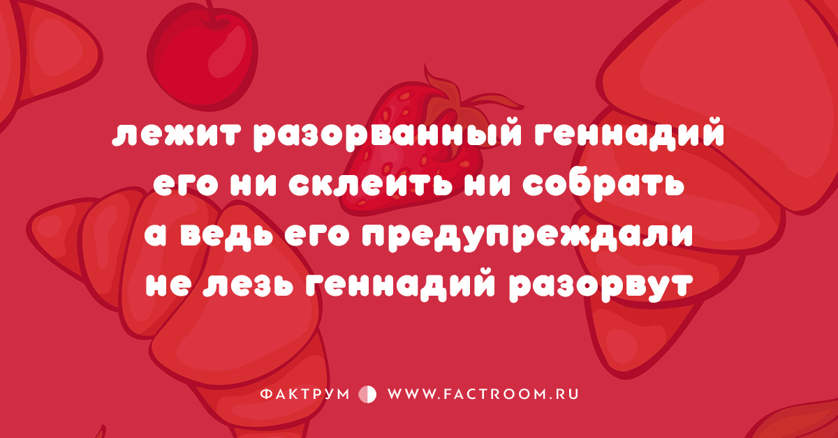 Анекдоты 18.11.2016 10 стишков-пирожков Читайте также: Подборка шуток и анекдотов № 49 Еще: 20 незабываемых фраз дирижёров, доведённых до отчаяния 15 смешных открыток № 2 20 анекдотов, которые доставят вам несколько минут здорового смеха Топ-10 анекдотов Анекдоты и шутки Интересные факты из рубрики «Анекдоты»