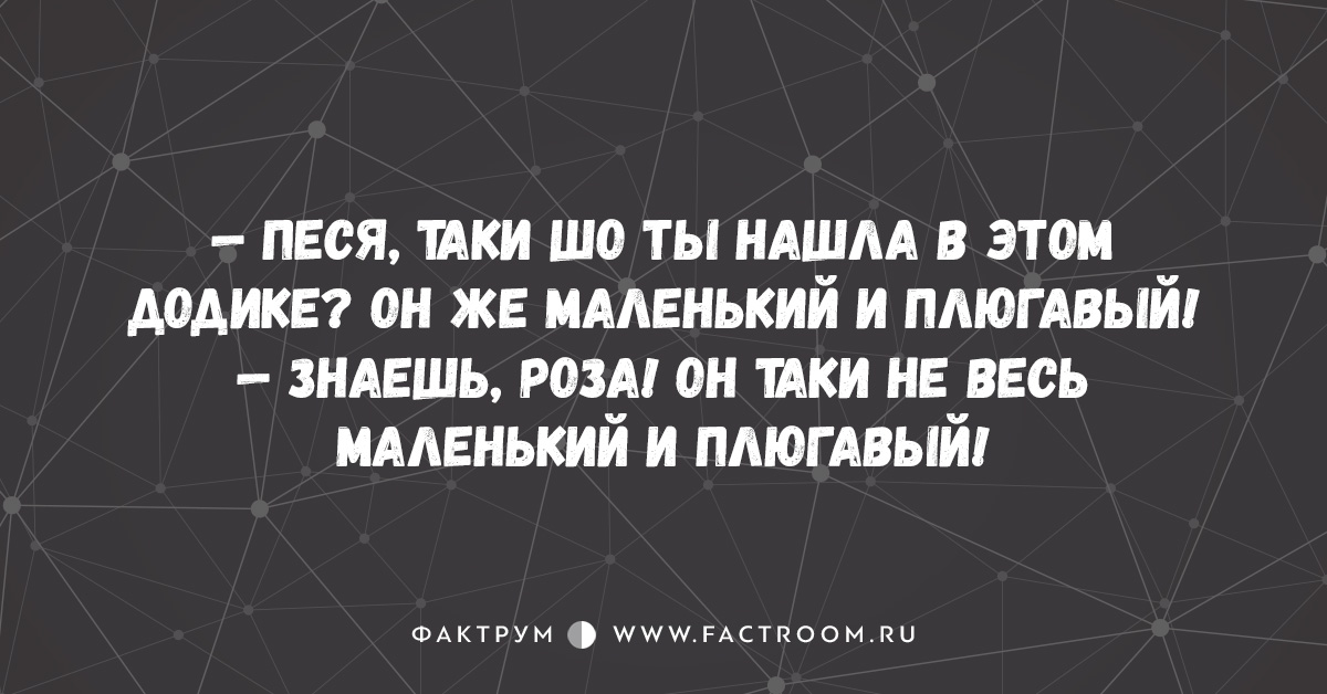 Анекдоты 20.10.2016 10 остроумных диалогов от мастеров красного словца Читайте также: Подборка шуток и анекдотов № 23 Еще: 20 весёлых открыток Одесский взгляд на женщин: 25 анекдотов! 15 забавных диалогов 20 современных поговорок Свежая десятка смешных анекдотов на Фактруме! Интересные факты из рубрики «Анекдоты»