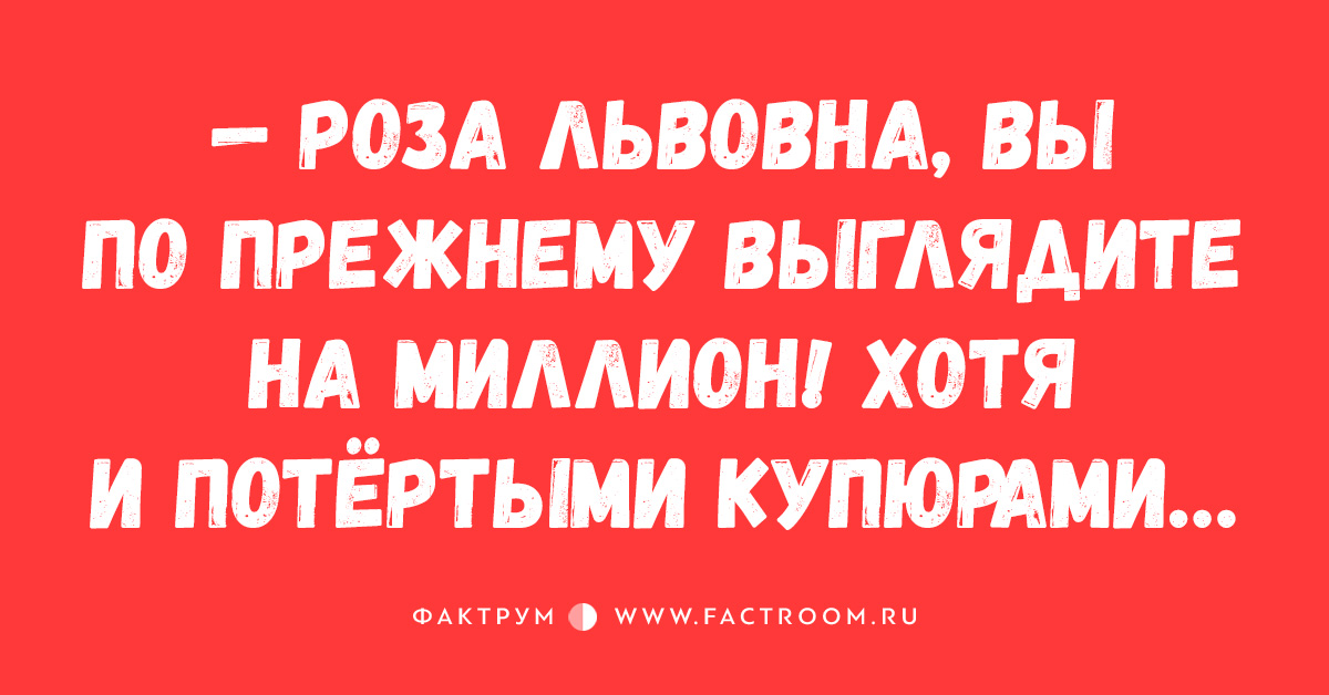 — Розочка, золотко, тебе без лифчика даже лучше! Когда на тебе его нет, все морщины на лице разглаживаются!