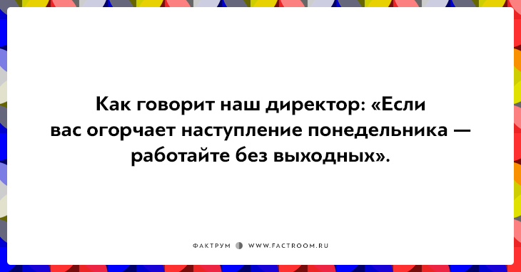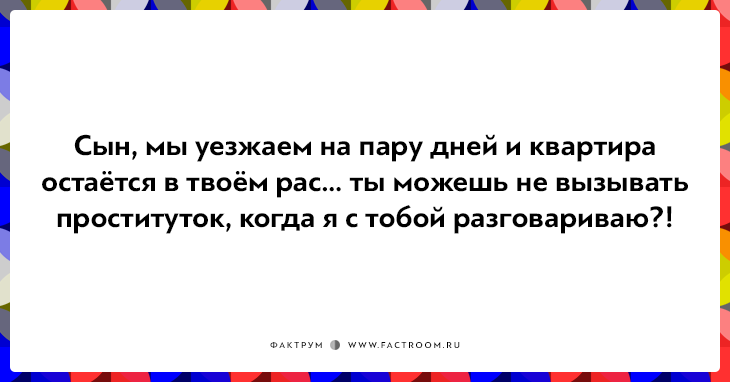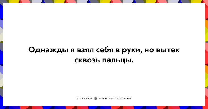 Анекдоты 21.03.2016 15 шуток с внезапным финалом Читайте такжк: 20 открыток со странным юмором Еще: 15 перлов от детей, которые знают о жизни всё 15 анекдотов для хорошего настроения Топ-10 анекдотов недели на Фактруме 15 открыток, которые наполнят ваш день позитивом 20 открыток с шутками Интересные факты из рубрики «Анекдоты»