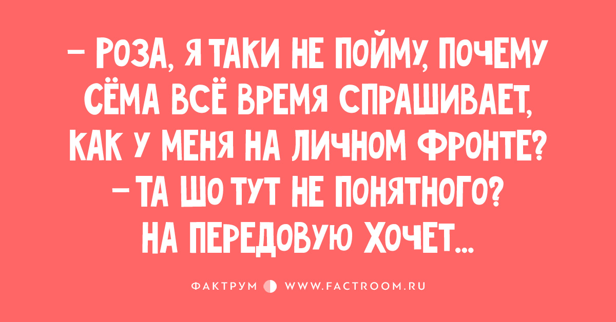— Сарочка, послушай маму! Если твой друг перестаёт бриться каждый день, менять носки, извиняться, говорить комплименты, дарить цветы — всё, успокойся… Он таки твой!