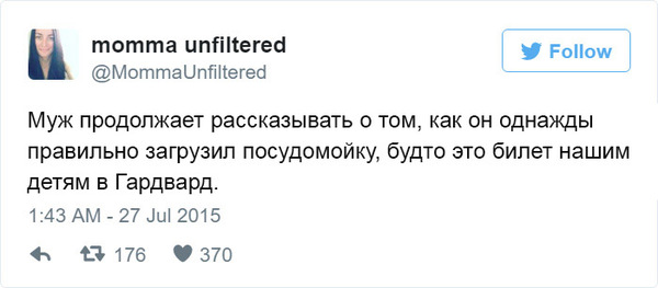 Фактрум публикует подборку твитов, в которых дамы здорово поиздевались над своими вторыми половинами — но сделали это любя.