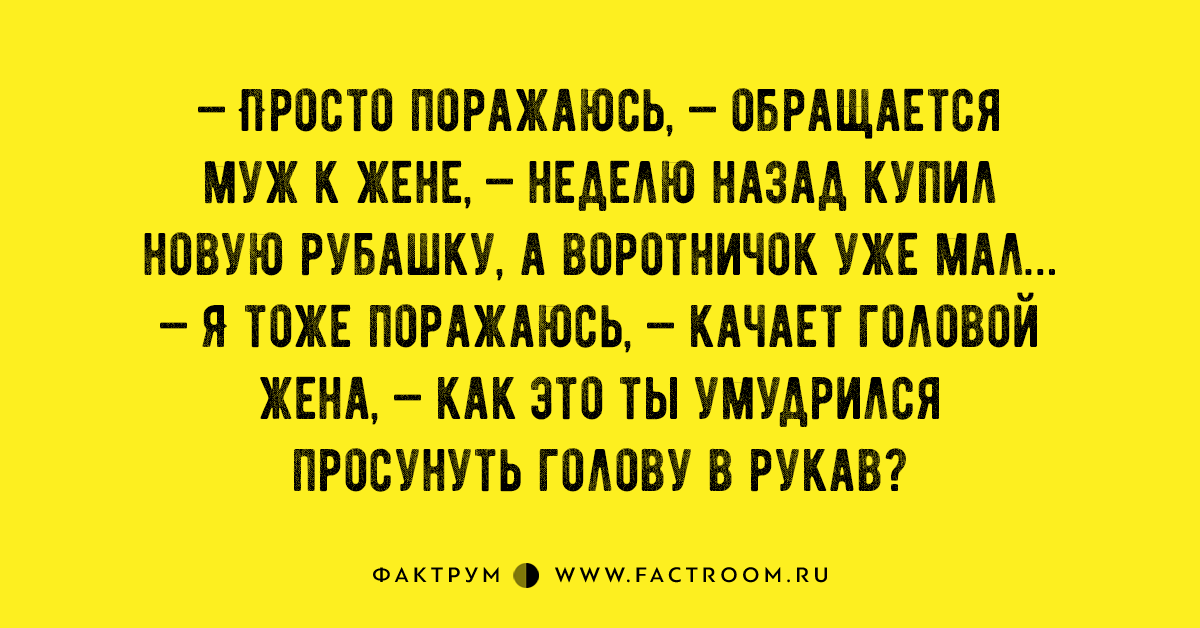 Идет женщина по улице. Смотрит в луже лежит мужик, повернула его туда-сюда, грязь обтерла. Смотрит -нормальный вроде бы мужик. Думает: «Сейчас зайду в магазин за хлебом и на обратном пути заберу его себе». Выходит из магазина, смотрит — а мужика нет. Восклицает: