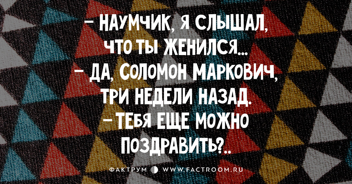 — Молодой человек! Вы меня спросили, и я вам таки скажу. Вы женаты?