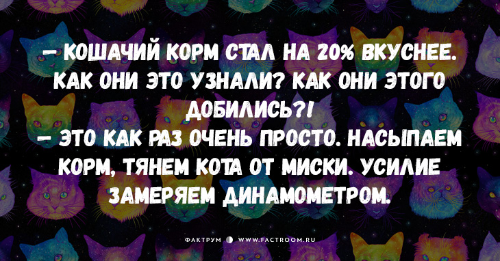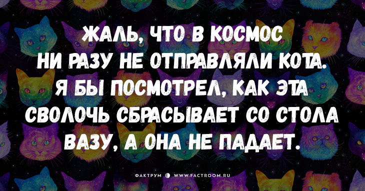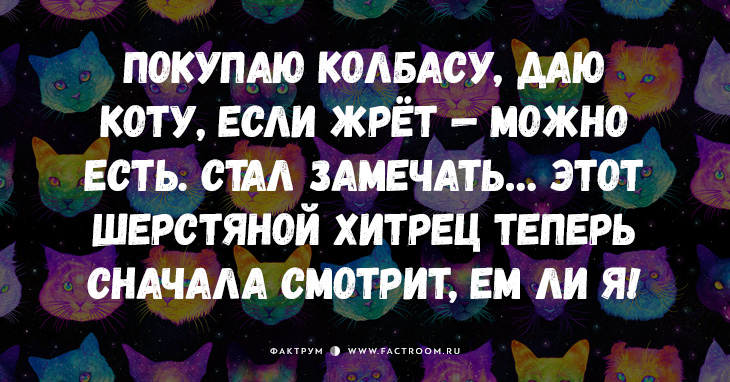 Фактрум публикует подборку шуток, анекдотов и просто забавных высказываний на кошачью тему.