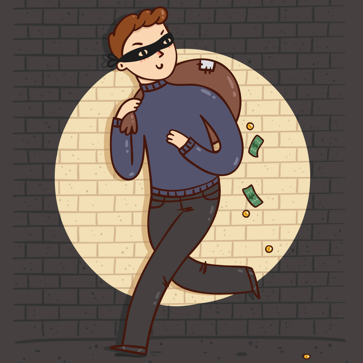 Вор подхватил несколько мешков и бросился наутёк. Утром хозяин вернулся домой.