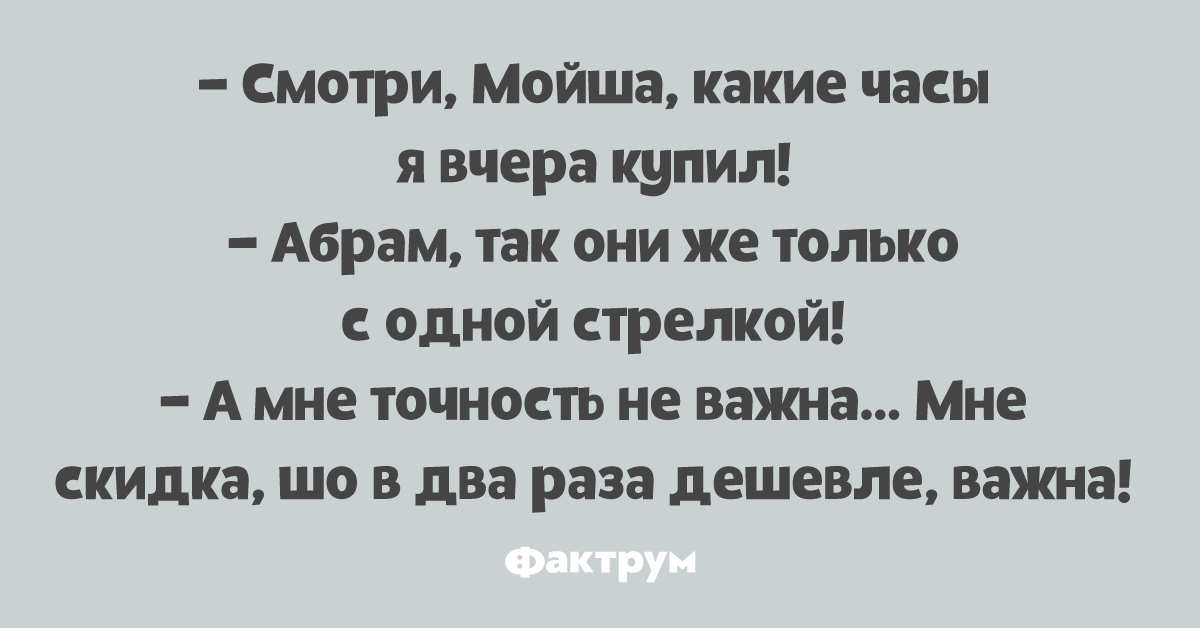 — Фирочка, а вам знакомо такое приятное ощущение, когда купили шо вам нафиг не нужно! Но на душе тепло от того, шо оно у вас есть?