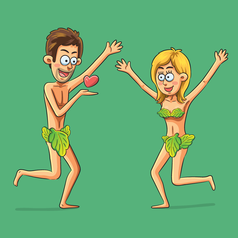 Адам и Ева отдыхают в прекрасном райском саду, как вдруг перед ними появляется Бог и сообщает приятные новости: