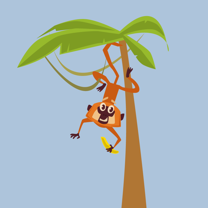 Петька взбирается на пальму, начинает дышать на макаку. Та шатается, но не падает. Злобно смотрит на обидчика и —ка-ак зарядит ему прямо промеж глаз! Петька падает на землю и кричит: