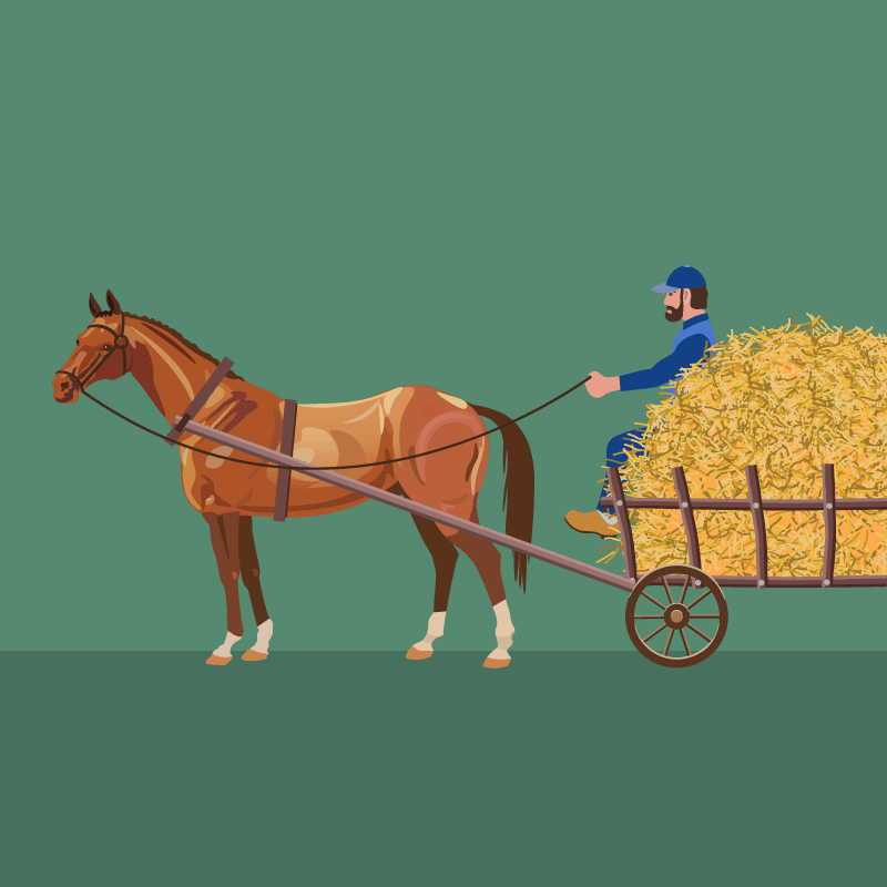 Мужик, дёрнув поводья, заставляет свою лошадку остановиться и с мечтательным видом, глядя куда-то вдаль, произносит: