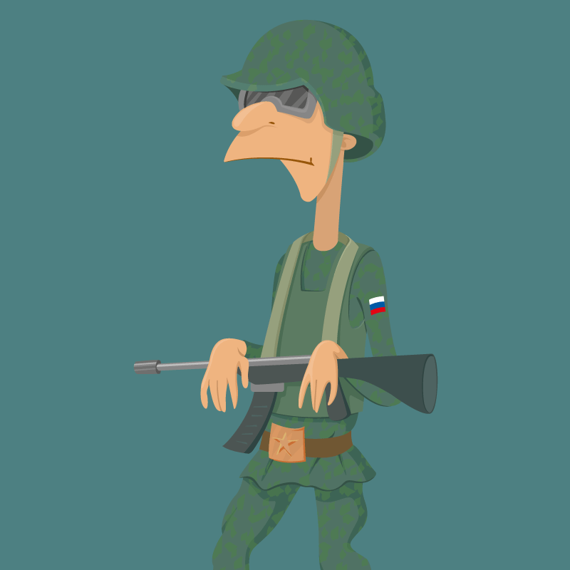Военное время. Идёт ожесточённый бой, немцы наступают на небольшой отряд, засевший в окопе. Командир некоторое время думает, что же делать, и, наконец, принимает решение. Он встаёт в окопе в полный рост и, потрясая автоматом, кричит своим солдатам: