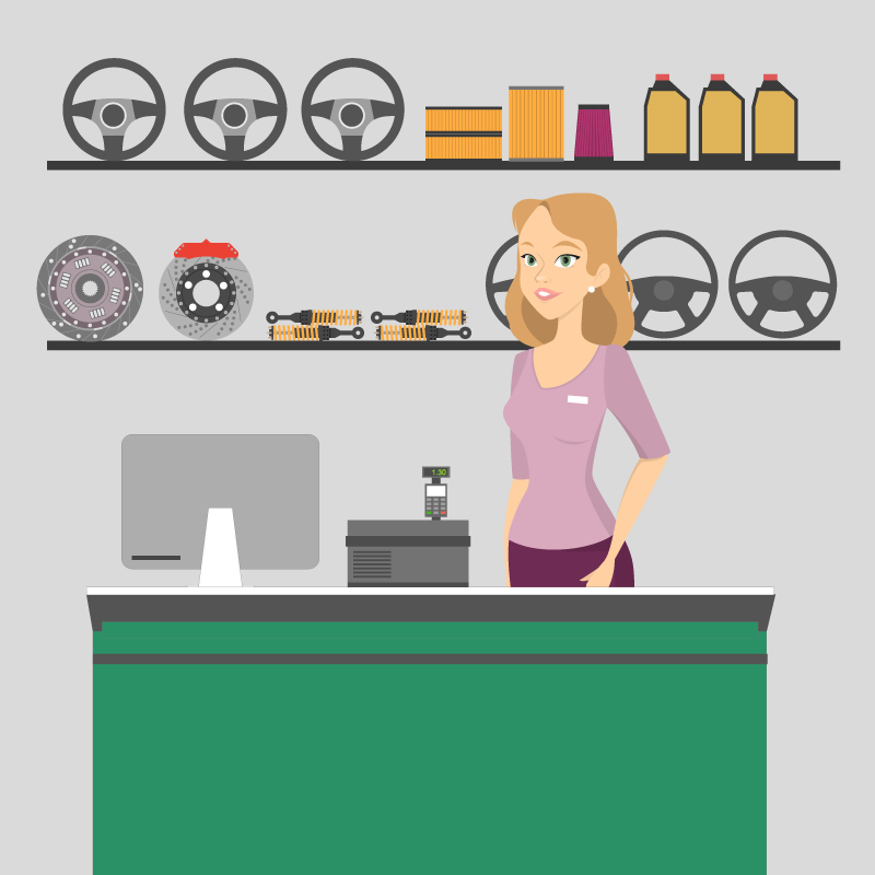 Девушка удаляется на склад и выносит нужный бампер. Второй мужик: