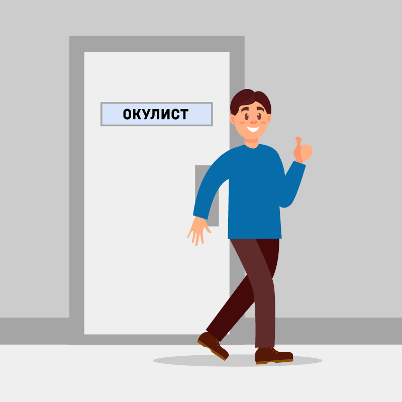 — Ага, голубчик, вас таких «близоруких» — каждый второй, и у каждого справочка имеется! — ехидно отвечает доктор. — Давайте-ка я проверю, вставайте сюда, закрывайте один глаз. Какую букву я показываю?