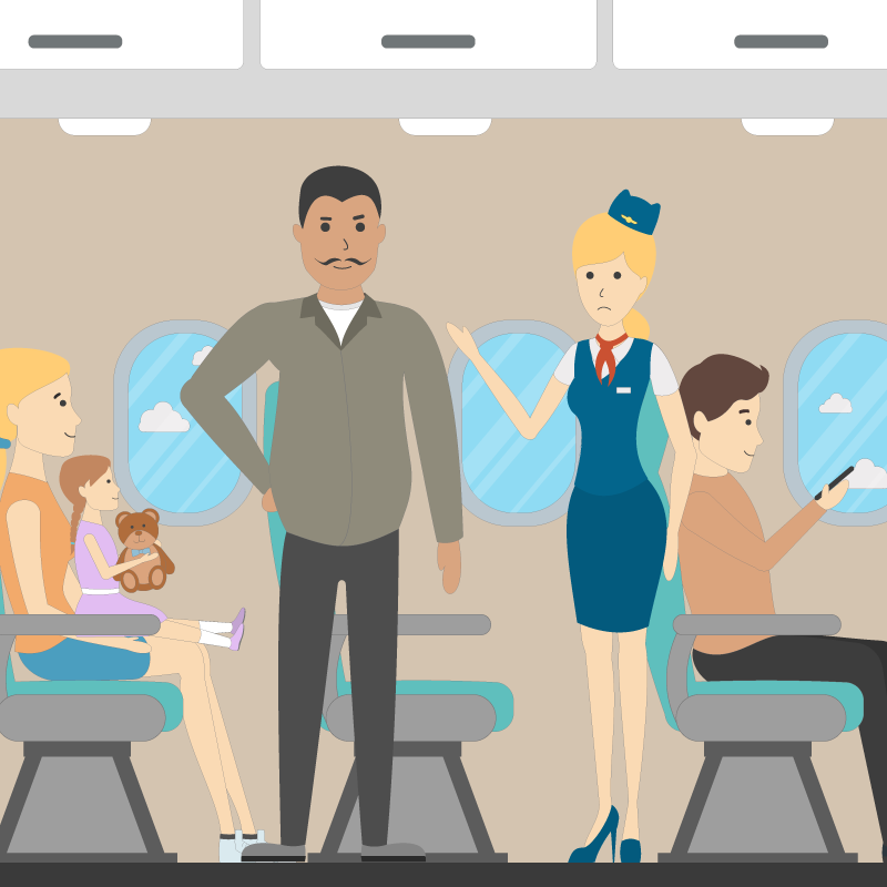 — О, понятно… — растерянно отвечает стюардесса и идёт докладывать о пассажире главному пилоту.