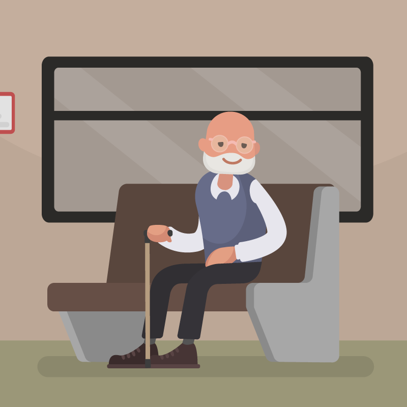 В автобусе возле окошка скучает старик. Вдруг на остановке в салон проходит панк: на голове — кислотно-зелёный ирокез, сам весь в пирсинге, на шее — увесистые цепи, руки в татуировках, одежда вся изорвана. В общем, усаживается этот персонаж прямо напротив дедули. У обоих дорога неблизкая, так что всё это время старичок пристально всматривается в парня.