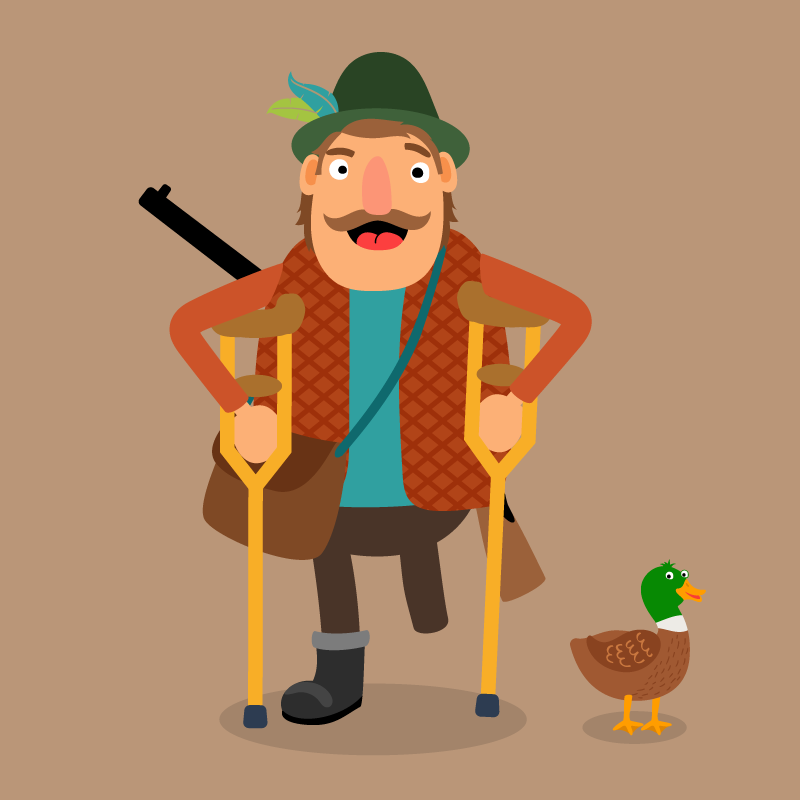 Один парень поехал на охоту в лес и наткнулся там на старого охотника без ноги, бодро передвигающегося на костылях по тропинке. Познакомившись, начинающий охотник поинтересовался: