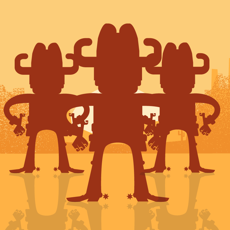 Компания трёх здоровенных ковбоев заходит в таверну. Высокие, мускулистые, с кольтами на поясах — все как на подбор. Усаживаются поудобнее за барную стойку, заказывают бутылку виски и начинают выпивать.