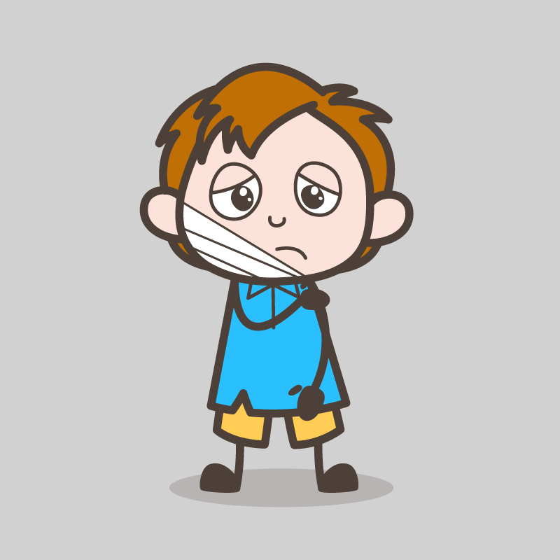Мама с Вовочкой едут в автобусе. Мальчик сидит и едва не плачет, придерживая рукой перебинтованную нижнюю челюсть, из открытого рта капает слюна. Все пассажиры с сочувствием смотрят на мальчонку, но молчат. Наконец какая-то сердобольная старушка не выдерживает и обращается к маме: