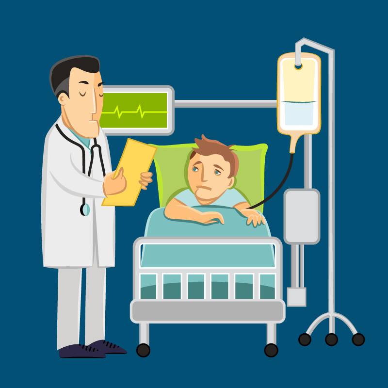 Доктор делает обход. Вдруг он замирает возле постели одного из пациентов, открывает его карту, внимательно читает и говорит: