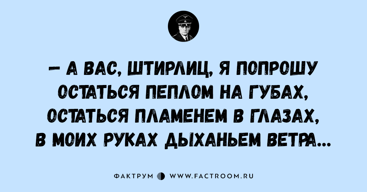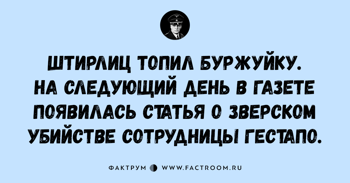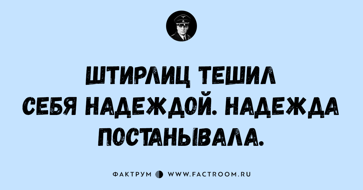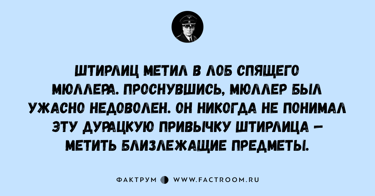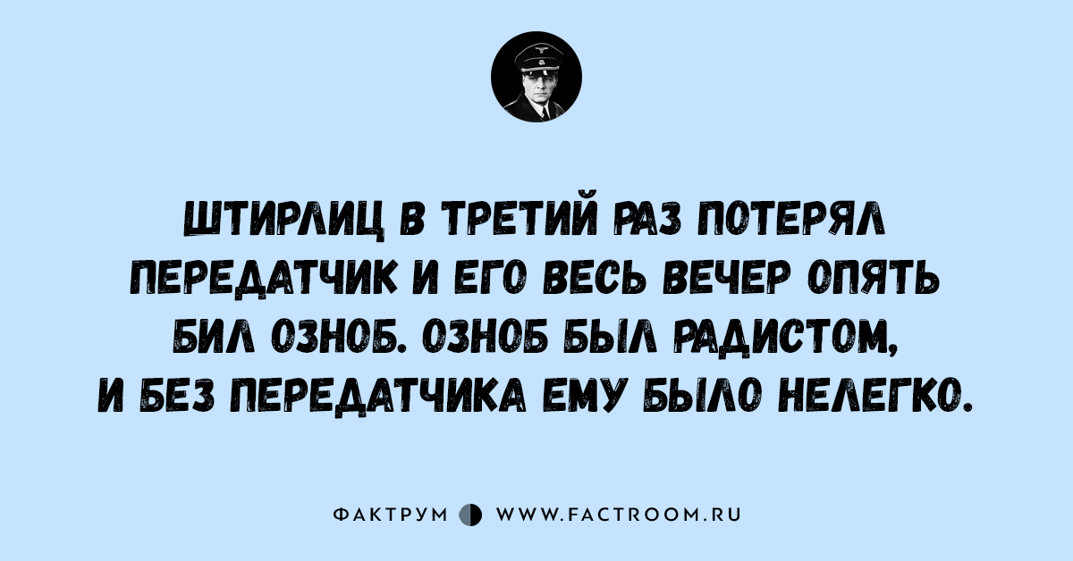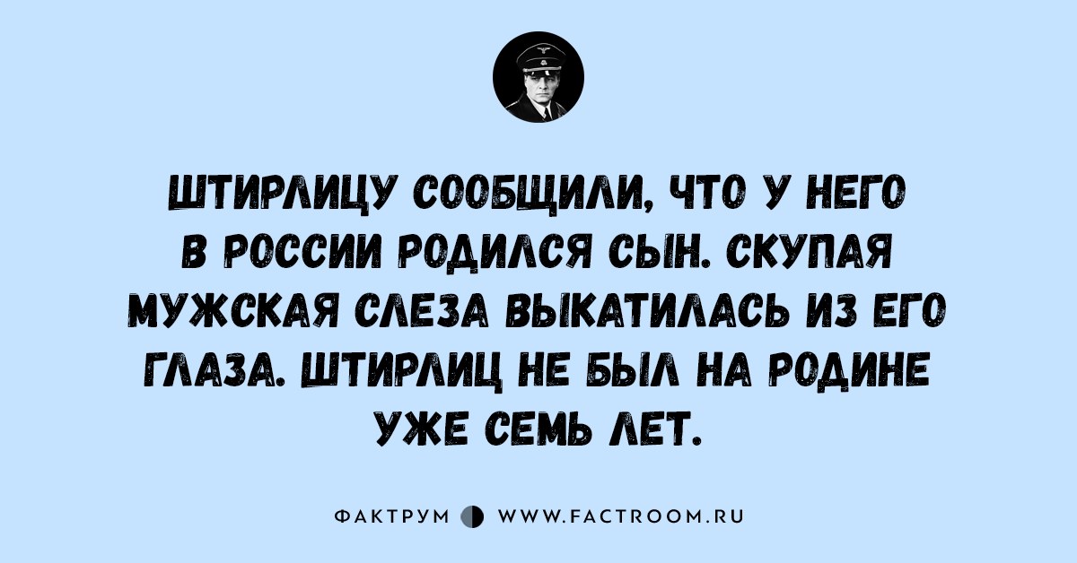 Анекдоты • Анекдоты про Штирлица 17.11.2016 15 анекдотов про всеми любимого Штирлица! Читайте также: Подборка шуток и анекдотов № 44 Интересные факты из рубрики «Анекдоты про Штирлица»