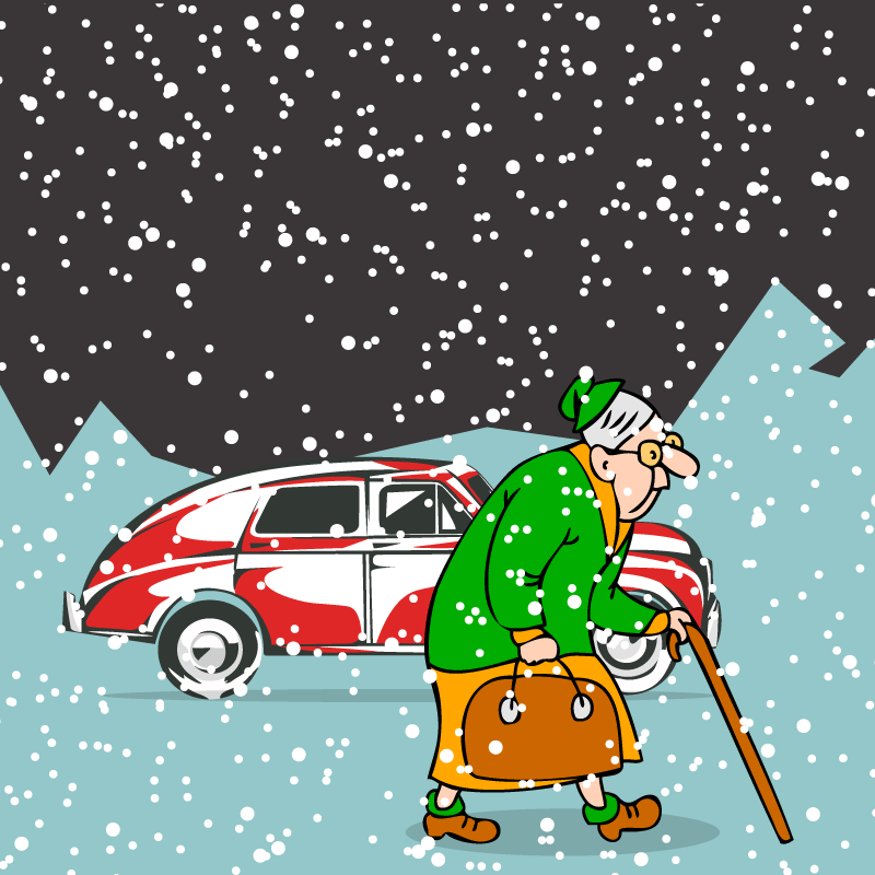 Ночью сквозь метель по дороге еле ползёт автомобиль. Вдруг в свете фар появляется сгорбленная фигура старушки. Она знаком просит водителя остановиться, приоткрывает дверь и говорит: