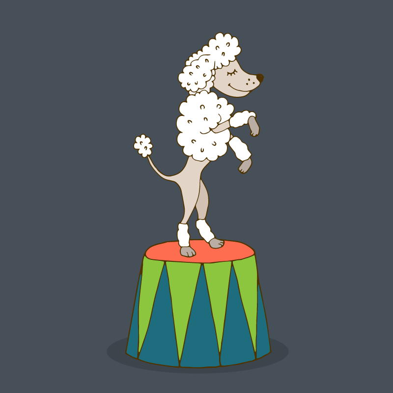 — Что вы, господин директор, какой уж тут секрет! Это всё просто фокус. Дело в том, что мой енот и играет на рояле, и поёт, а собака просто вертится на месте и открывает пасть!