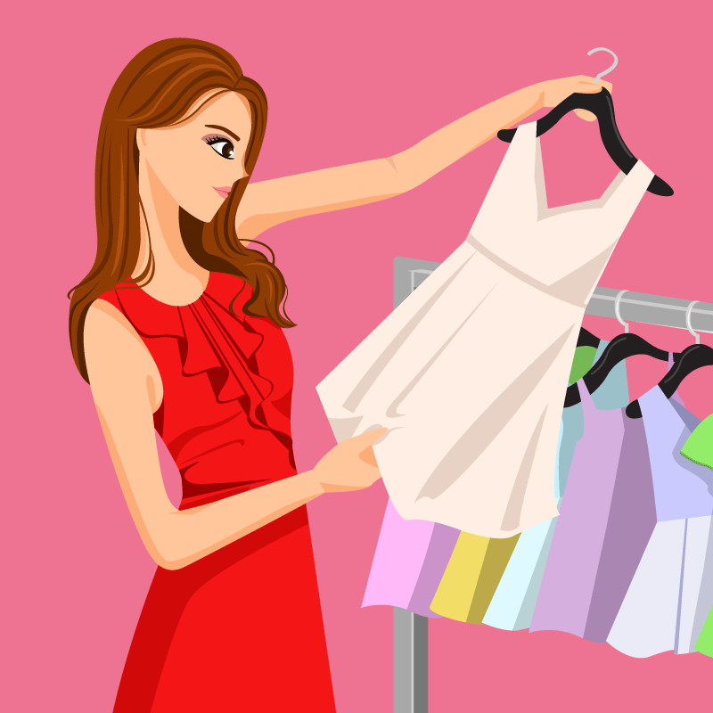 В бутик дорогой одежды входит симпатичная девушка в ярком платье и останавливается перед манекеном, разглядывая одежду на нём. Спустя пару минут к ней подходит продавец и интересуется: