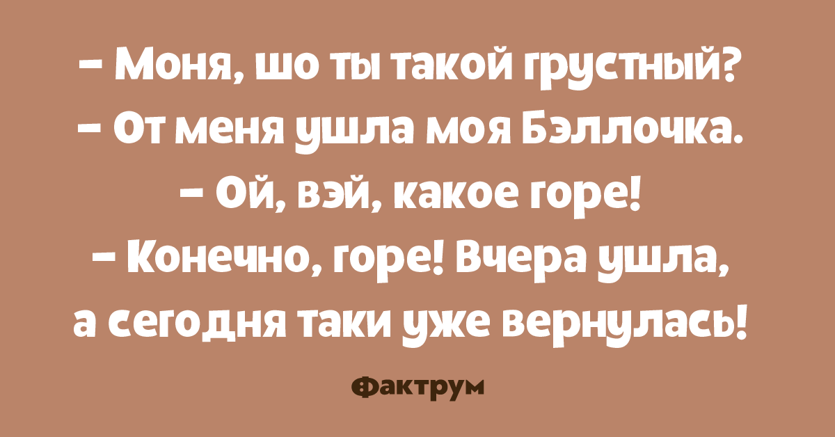 — Ой, Роза! Как мне тяжело без мужа! Уже десять лет как он умер, а у нас таки четверо малолетних детей!