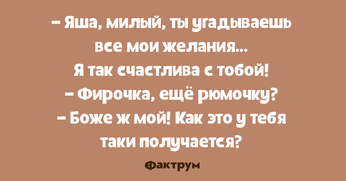 — Ой, Яша, и не говори! Они только и ждут, когда ты напьёшься, чтобы проснуться рядом!