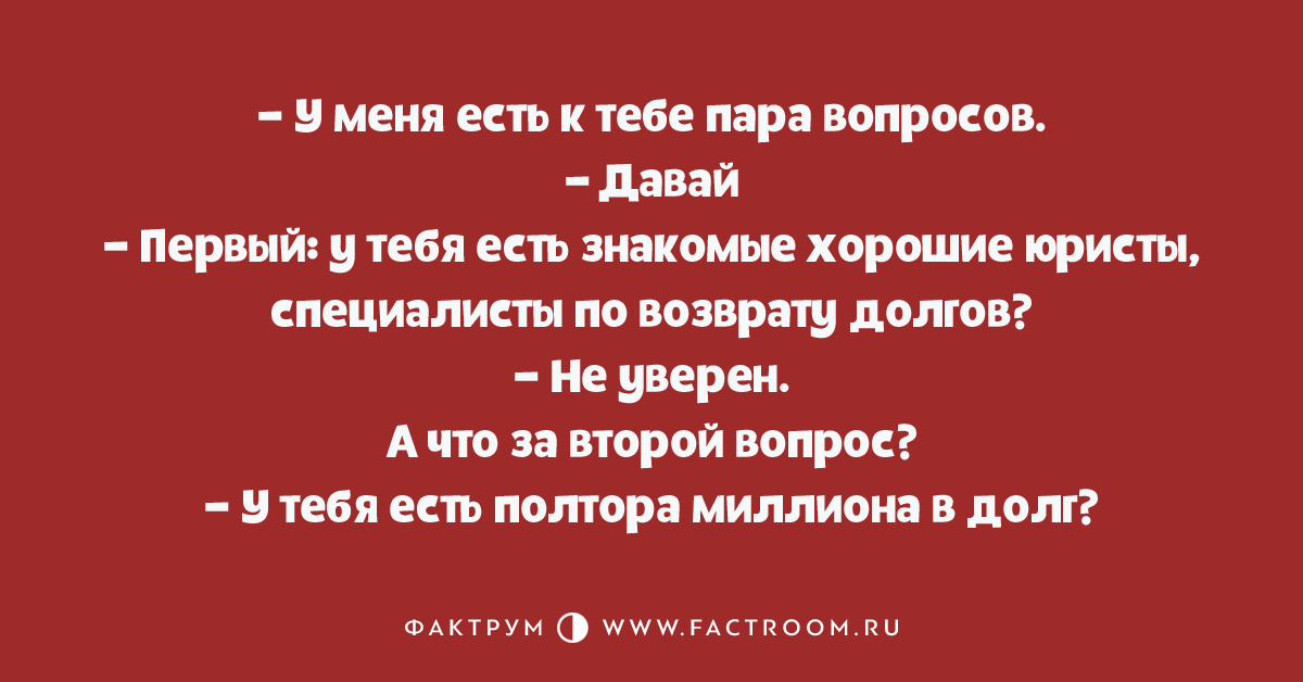 — Мне ещё хуже. Моя жена думает, что она и сейчас замужем за миллионером.