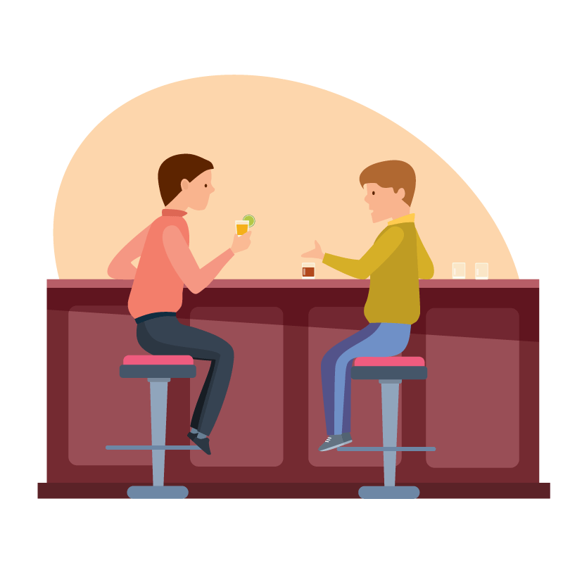 На встрече одноклассников в ресторане сидят двое мужчин в уголке и предаются воспоминаниям: