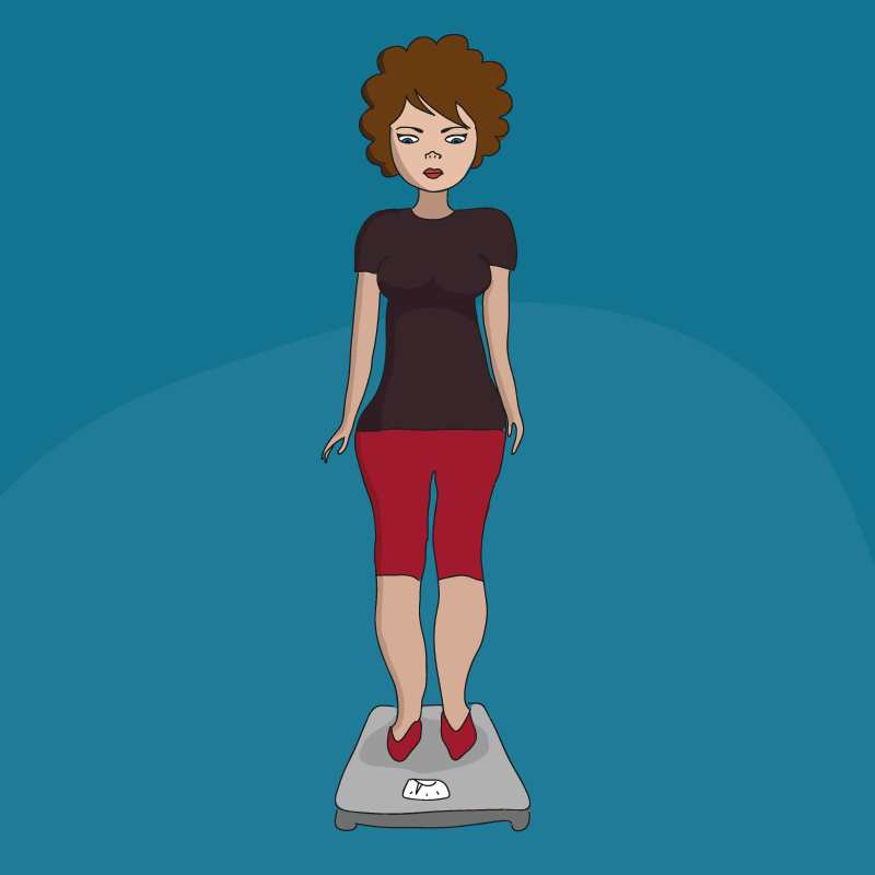 Одна дама решила, что она сильно потолстела, и стала ограничивать себя в любимой еде. Через несколько месяцев она захотела оценить прогресс и, встав на весы, посмотрела на показанные цифры. Результат её совершенно не удовлетворил: вес остался таким же, как и был до диеты.