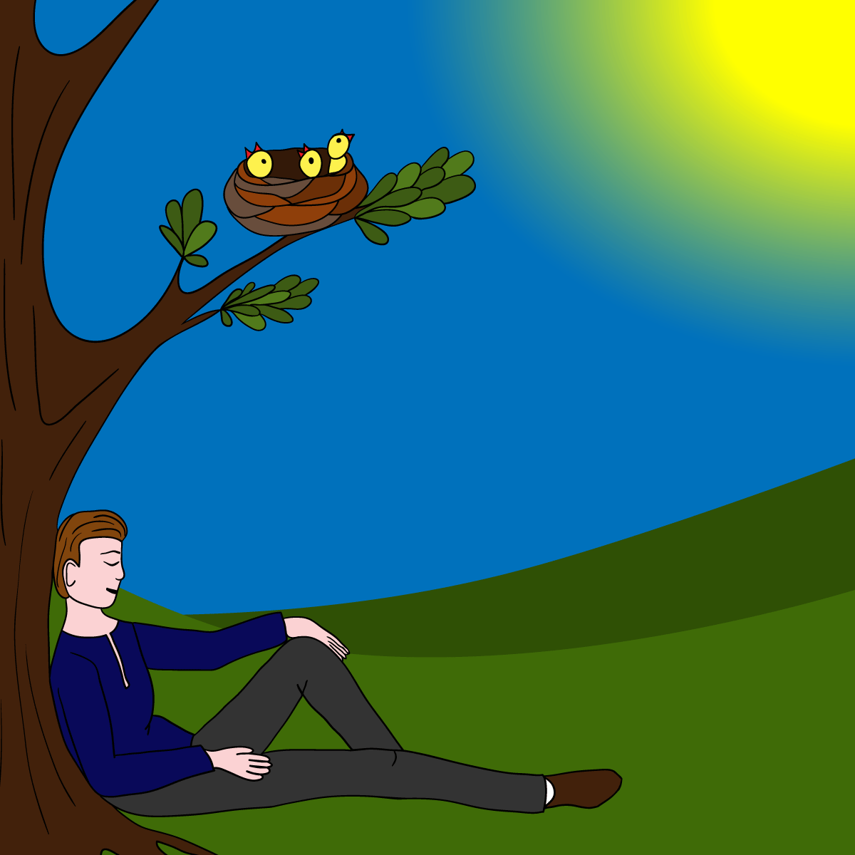 Захолустный американский городок. К мужчине, сидящему в тени под деревом, подходят двое юношей в строгих костюмах и с книгами в руках, и один говорит: