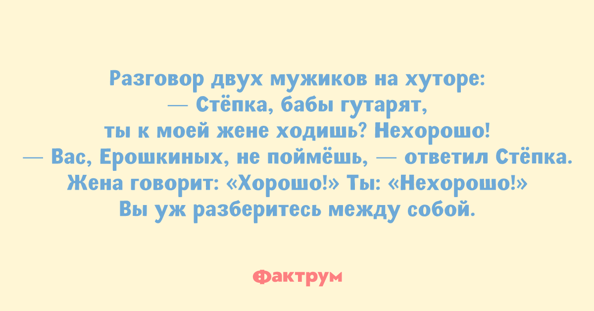 В ресторане шумно и весело гуляла свадьба, гости — сплошь интеллигенция. На третьем часу застолья свидетель встал из-за стола, тяжко вздохнул и врезал проходящему мимо брату невесты в ухо со словами: