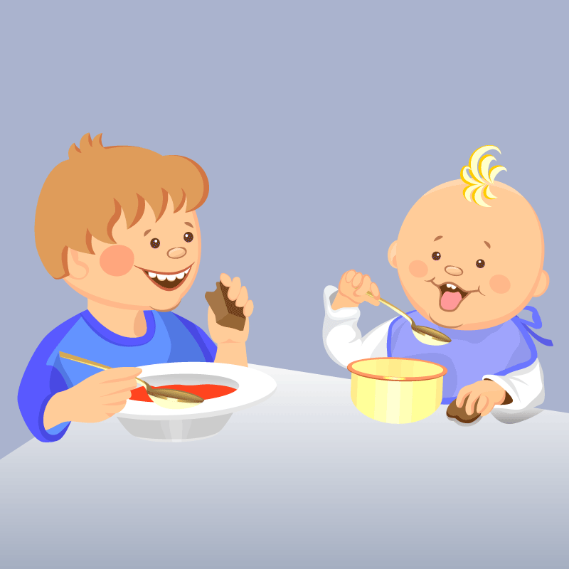 Десятилетний Петя всё время баловался во время еды, и мама наказала его, запретив разговаривать за столом. Настало время обеда, мама позвала Петю и его младшего брата Колю, но на кухню прибежал только старший, уселся за стол, взяв в руки ложку, и сказал: