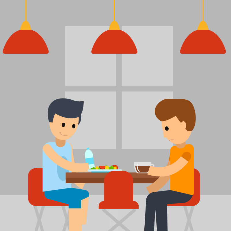 За столом в школьной столовой сидят двое мальчишек и, без аппетита ковыряясь в тарелках, болтают: