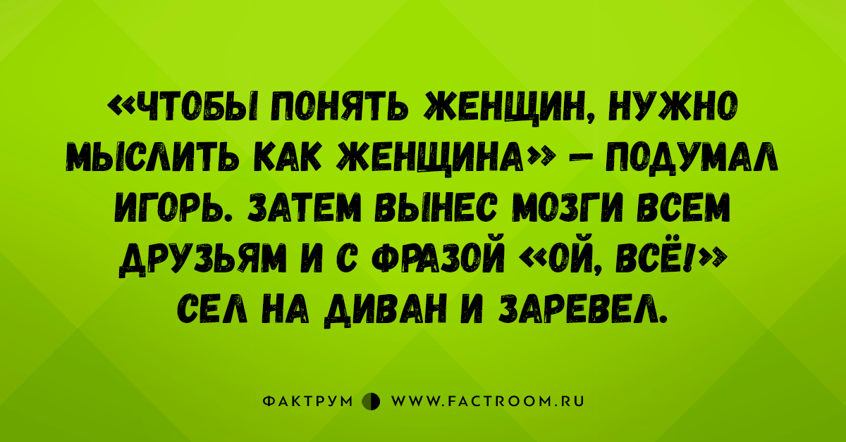 Логика мужчин мне была ясна ещё с детства, когда принц резко забыл, как выглядит Золушка, и заставлял левых баб королевства мерить её туфлю.