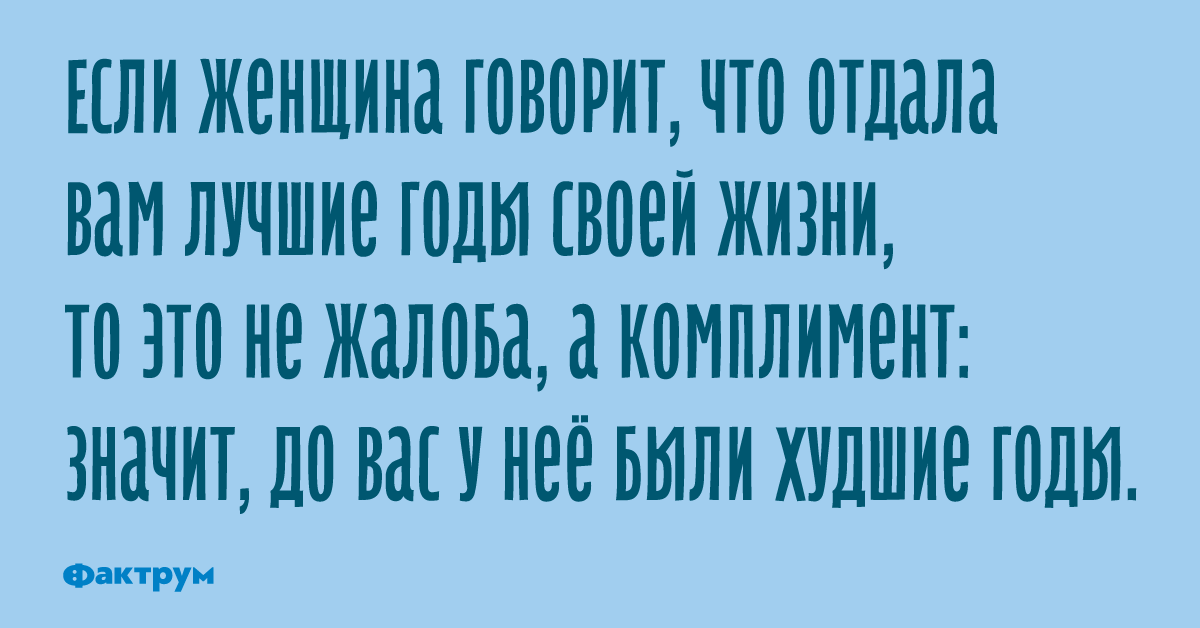 — От тебя десять лет женскими духами пахнет! Я тебе хоть слово сказал?
