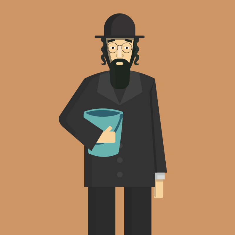 Через полчаса Мойша выходит из кабинета доктора всё с тем же ведром, полным до краёв, и направляется к выходу. Его опять останавливает охранник: