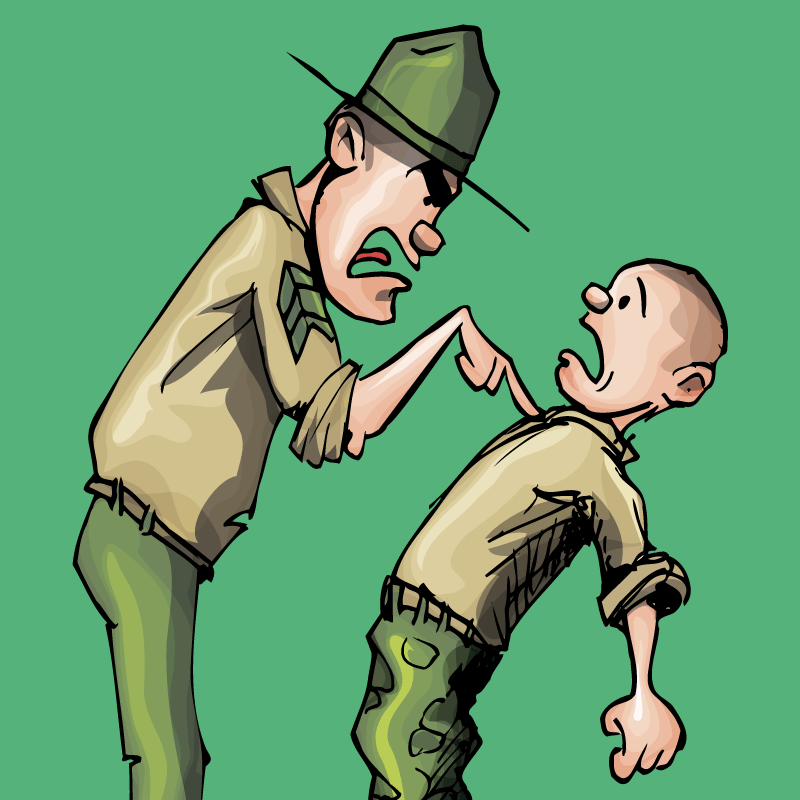 Сержант выходит из себя и орёт пуще прежнего: