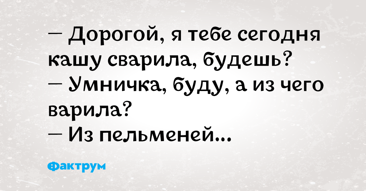 — Сегодня встала раньше своего мужа. Одеваюсь. А он, нахал, валяется и намекает на всякие глупости. Я ему говорю:
