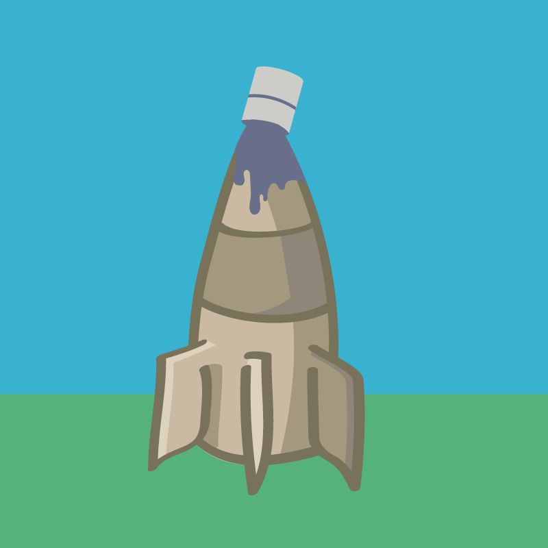 — Эх, надо что-то придумать… О, закину-ка я ведро на верхушку ракеты, краска-то потечёт вниз и всё прокрасит!