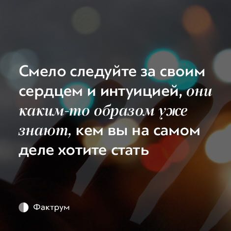 Смело следуйте за своим сердцем и интуицией, они каким-то образом уже знают, кем вы действительно хотите стать