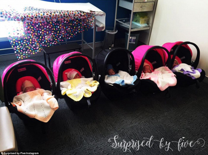 Акушер Ян Дикинсон сумел принять роды каждого младенца менее чем за две минуты и был поражен выносливостью матери. Пятерняшки были помещены в реанимацию, где находились под круглосуточным наблюдением в течение шести недель, пока не окрепли достаточно, чтобы отправиться домой.