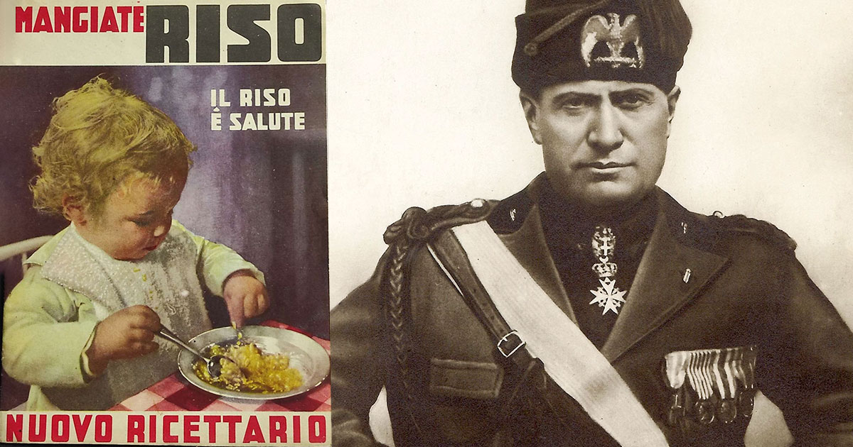 Итальянский диктатор Бенито Муссолини по идейным и политическим соображениям пытался бороться с макаронами. Он популяризировал ризотто, в основе которого — рис с различными соусами и добавками. Позицию Муссолини разделяли итальянские