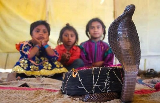 Индийское кочевое племя Вади преследует иные цели: там детей с малых лет учат заклинать ядовитых змей, причём наблюдать за этим обучением действительно жутко — малыши, как ни в чём не бывало, сидят прямо посреди клубка кобр.