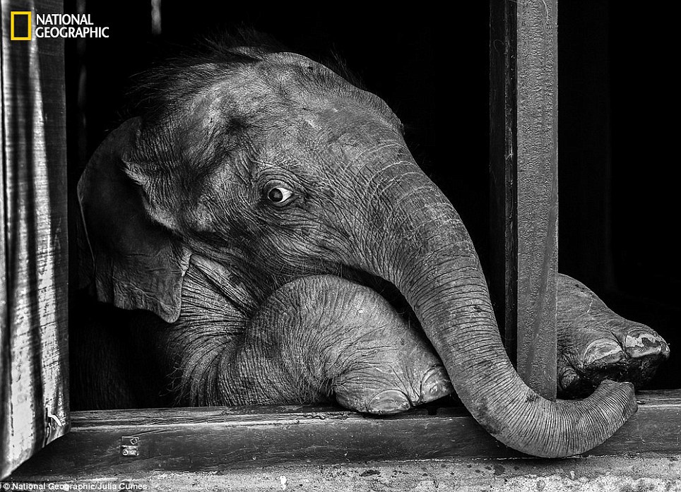 «Я встретила этого слонёнка, когда снимала программу о его реабилитации в Ассаме, Индия. Слонёнок потерял свою мать во время наводнения. Я провела с ним много времени, и очень сильно к нему привязалась. Когда я наконец собралась уезжать, я обернулась всего один раз, чтобы посмотреть на строение, в котором он жил. Он поднялся на задние ноги, и посмотрел на меня через окно. Выражение его глаз было поразительно человеческим в тот момент, и я увидела в этих глазах нечто всеобщее, универсальное, нечто очень выразительное».