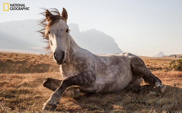 «По прибытии в охотничий домик Джонатана, в Национальном Парке Сехлабатебе, Лесото, наши лошади принялись праздновать своё освобождение от ноши. Разве я мог этим не воспользоваться в послеполуденном свете? Фото я сделал с помощью Canon EF, и 22-х миллиметрового широкоугольного объектива».