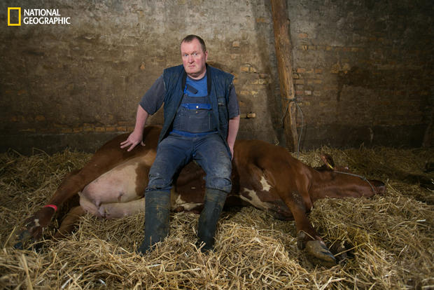 «Появление больной коровы в стаде сильно беспокоит каждого фермера, и хотя фермер имеет более 400 голов крупного рогатого скота, он очень переживает, когда кто-то из его животных заболевает. Потому что он знает их всех, он вырастил каждую из этих коров. Чтобы успокоить своих коров во время лечения, он садится на них».